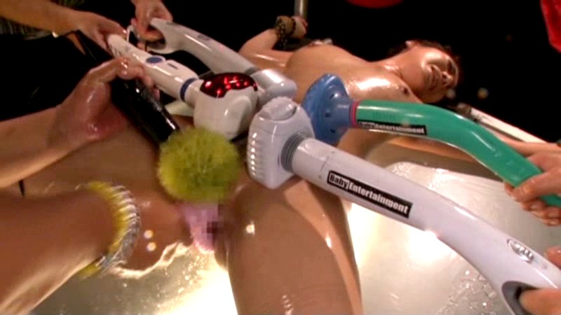 最後の快楽責めは上の画像のようなM字開脚拘束で行われており、ドリルバイブを使った責めも収録されています。